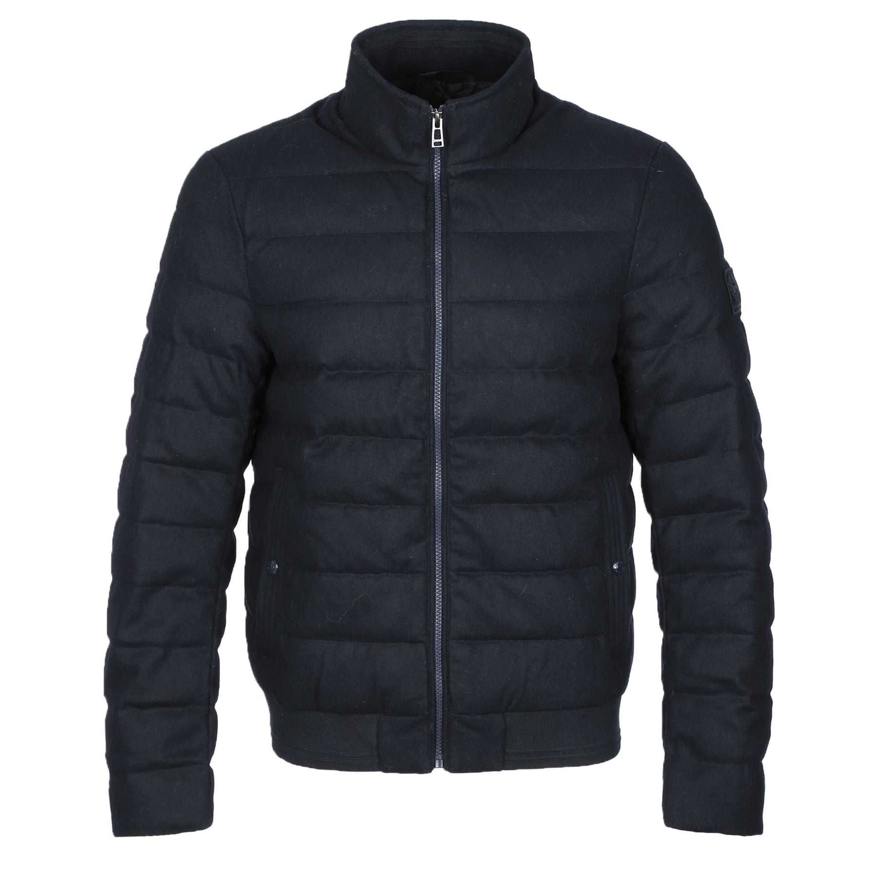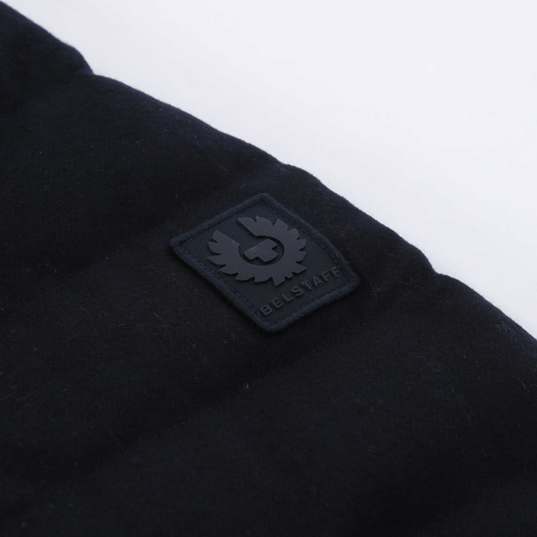 Belstaff Circuiteer Jacket in Dark Ink Wool. A lightweight puffer jacket by Belstaff expertly crafted in Italy from a water-repellent tech-wool blend and insulated with premium down for outstanding warmth and comfort. Designed for effortless layering, it offers a high level of insulation in a sleek, compressible silhouette—perfect for cold-weather city commutes or weekend escapes.