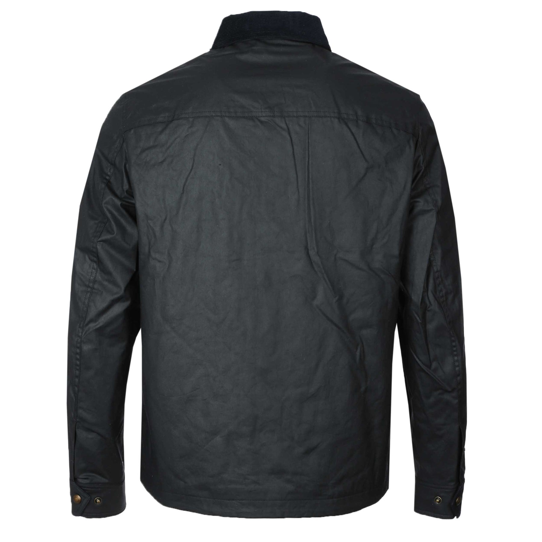 Belstaff Ground Wax Jacket in Dark Navy. Crafted from premium 6oz waxed cotton, it delivers reliable warmth with water- and wind-repellent protection. A corduroy collar adds a refined touch, while the interior cotton twill lining features Belstaff’s signature check pattern for classic character.Designed with a moto-inspired angled chest pocket, adjustable snap cuffs, and antique brass hardware, this timeless jacket balances utility and style.