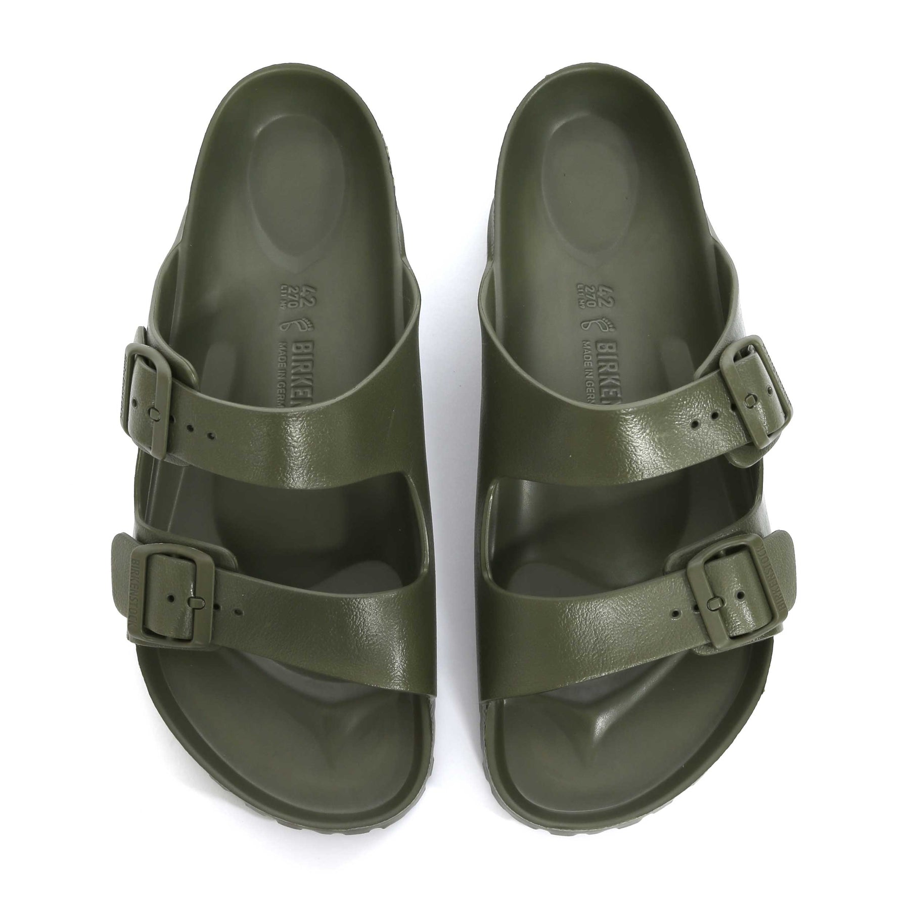 Birkenstock Arizona EVA Sandal in Khaki. The Birkenstock Arizona EVA reimagines the brand’s iconic two-strap sandal in an ultra-lightweight, modern material designed for everyday versatility. Based on the classic cork sandal silhouette, this version is crafted entirely from high-quality EVA, delivering the signature Birkenstock comfort in a flexible, water-friendly design. Engineered to be waterproof, ultra-lightweight and highly flexible, the EVA construction makes these sandals perfect for holidays, poolside wear, the beach or relaxed everyday use. The material is odour-neutral, skin-friendly and tested for harmful substances, ensuring comfort and peace of mind with every step.
