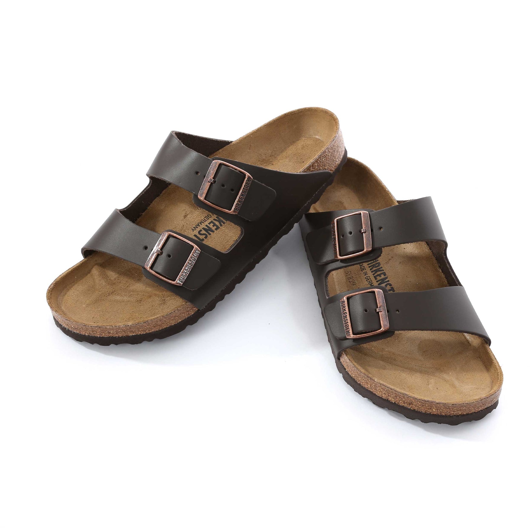 Birkenstock Arizona Sandal in Dark Brown. The Birkenstock Arizona is an iconic sandal that has been loved by men and women for decades. Known for its timeless two-strap design and legendary comfort, this classic style has achieved cult status thanks to its simple aesthetic and exceptional wearability. This version features the original Birkenstock soft footbed, enhanced with an additional foam layer for superior cushioning and long-lasting comfort. The anatomically shaped cork-latex footbed supports the natural contours of the foot, delivering the signature Birkenstock feel that adapts over time.