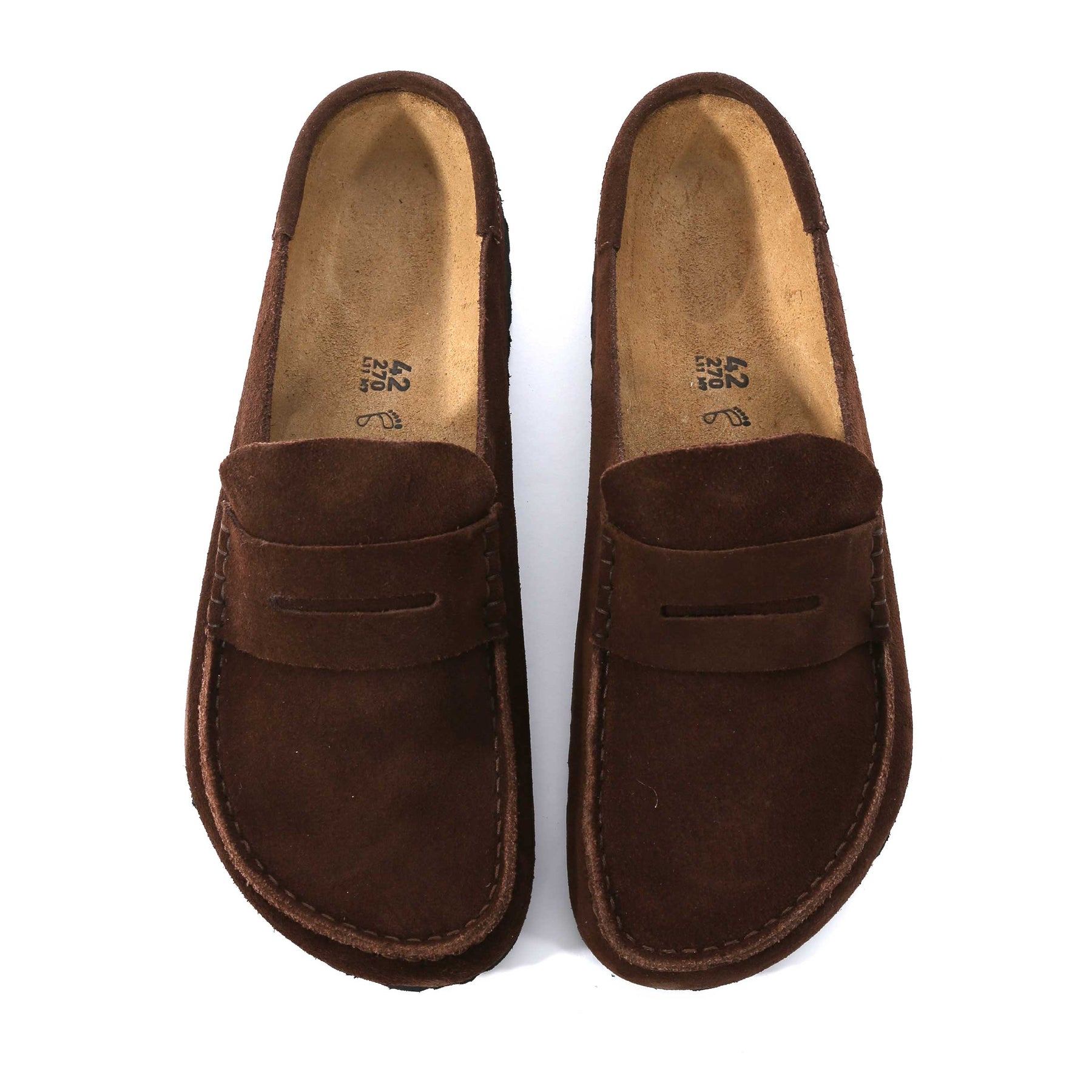 Birkenstock Naples Wrapped Sandal in Carafe. Crafted from soft suede, the upper gently hugs the foot for a natural, glove-like fit while maintaining breathability and everyday comfort. Inside, the anatomically shaped cork-latex footbed supports the natural contours of the foot, offering the signature cushioning and support that defines Birkenstock footwear. The two-component sole construction enhances both stability and comfort. A lightweight EVA midsole provides cushioning and shock absorption, while the genuine rubber outsole delivers durability and reliable grip.