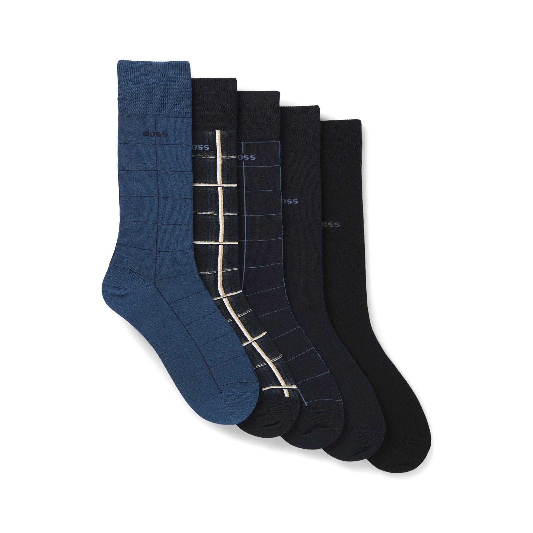Boss 5PRS Giftset Check CC in Black. A boxed gift set from BOSS. Featuring 5 pairs of branded BOSS socks. 2 plain pair and 3 pairs with check detailing. A perfect gift arriving in a Hugo Boss box.