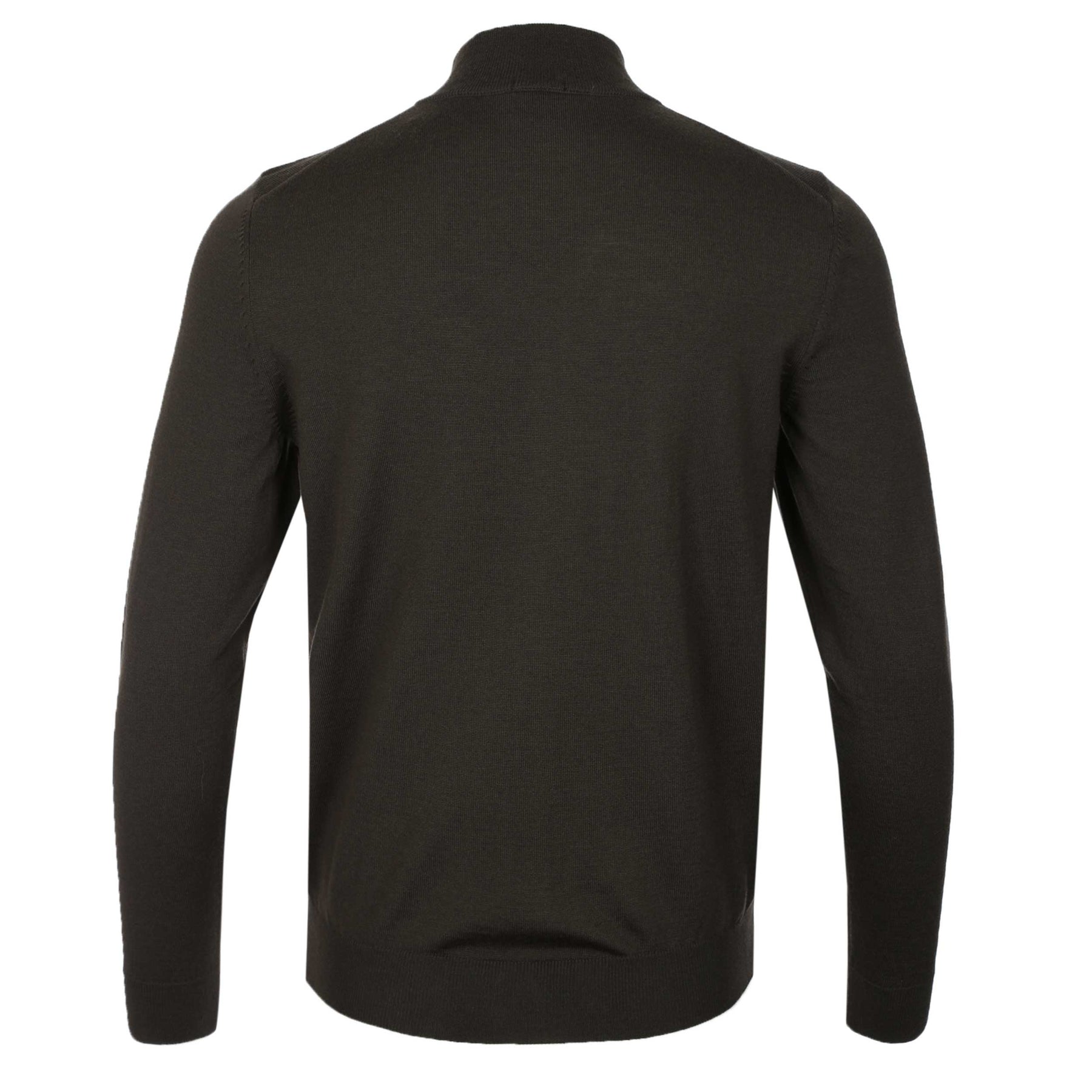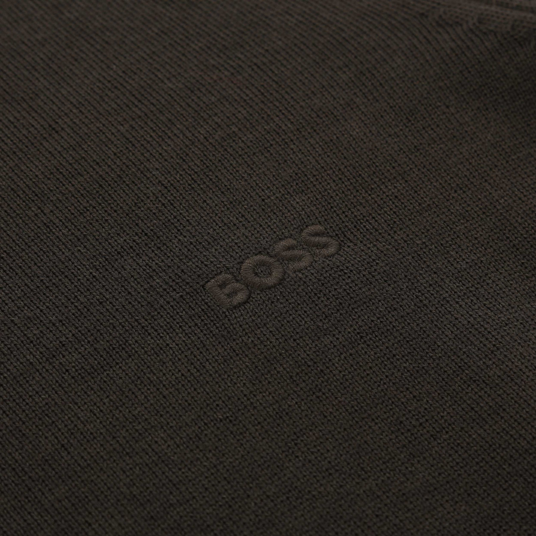 BOSS Balonso L Knitwear in Open Green. A sleek full-zip layer from BOSS, finished in a clean black palette for maximum versatility. It features a high stand ribbed collar, ribbed cuffs, and a stretch ribbed waistband for a streamlined fit that keeps its shape. Subtle top-stitch detailing adds refinement, while the signature BOSS woven pinch tag at the left side seam delivers an understated branded touch. A modern everyday essential built for effortless style.