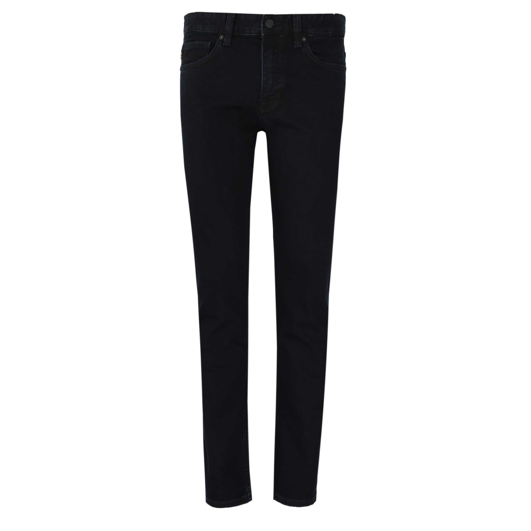 BOSS Delaware BO Jean in Dark Blue Denim. BOSS Delaware jeans arrive in a slim fit, made from a brushed cotton with stretch for added comfort. Featuring a regular zip fly fastening with button to waistband. Solid colour jean in a 5 pocket jean design. The perfect jean to wear casual, or smarten up by layering up with a shirt and jacket combination.