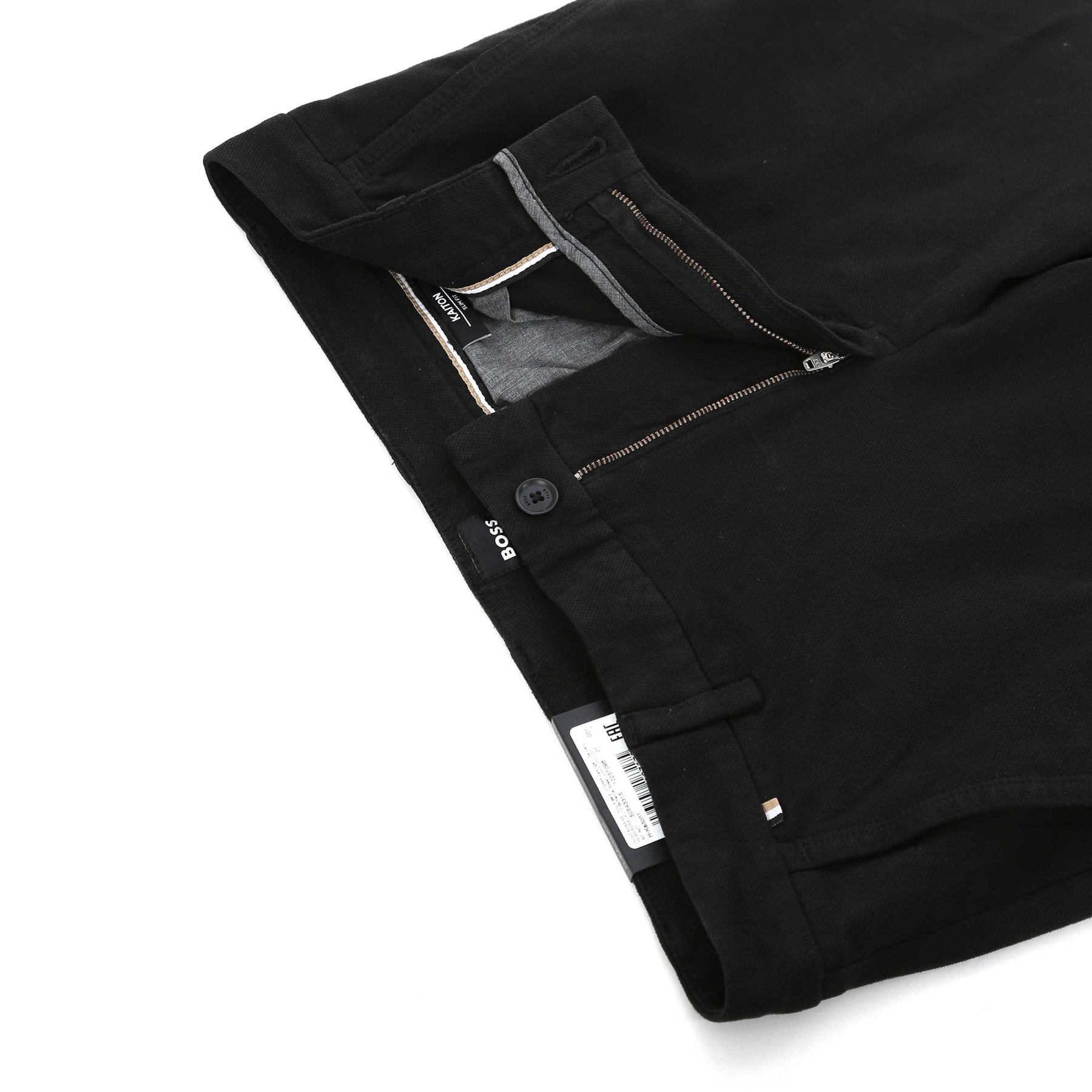 BOSS H Kaiton1 Chino in Black. Tech fabric chino by BOSS in a slim fit. The BOSS H Kaiton1 Chino in Black is a modern wardrobe staple built for everyday versatility. Cut in a streamlined regular fit, these chinos are crafted from a smooth, stretchy cotton-blend that delivers comfort without losing shape. They feature a classic zip fly, subtle tailoring details, and clean lines that make them easy to dress up or down. Finished with discreet BOSS branding, they’re the go-to pair when you want something smart, minimal, and reliably sharp.