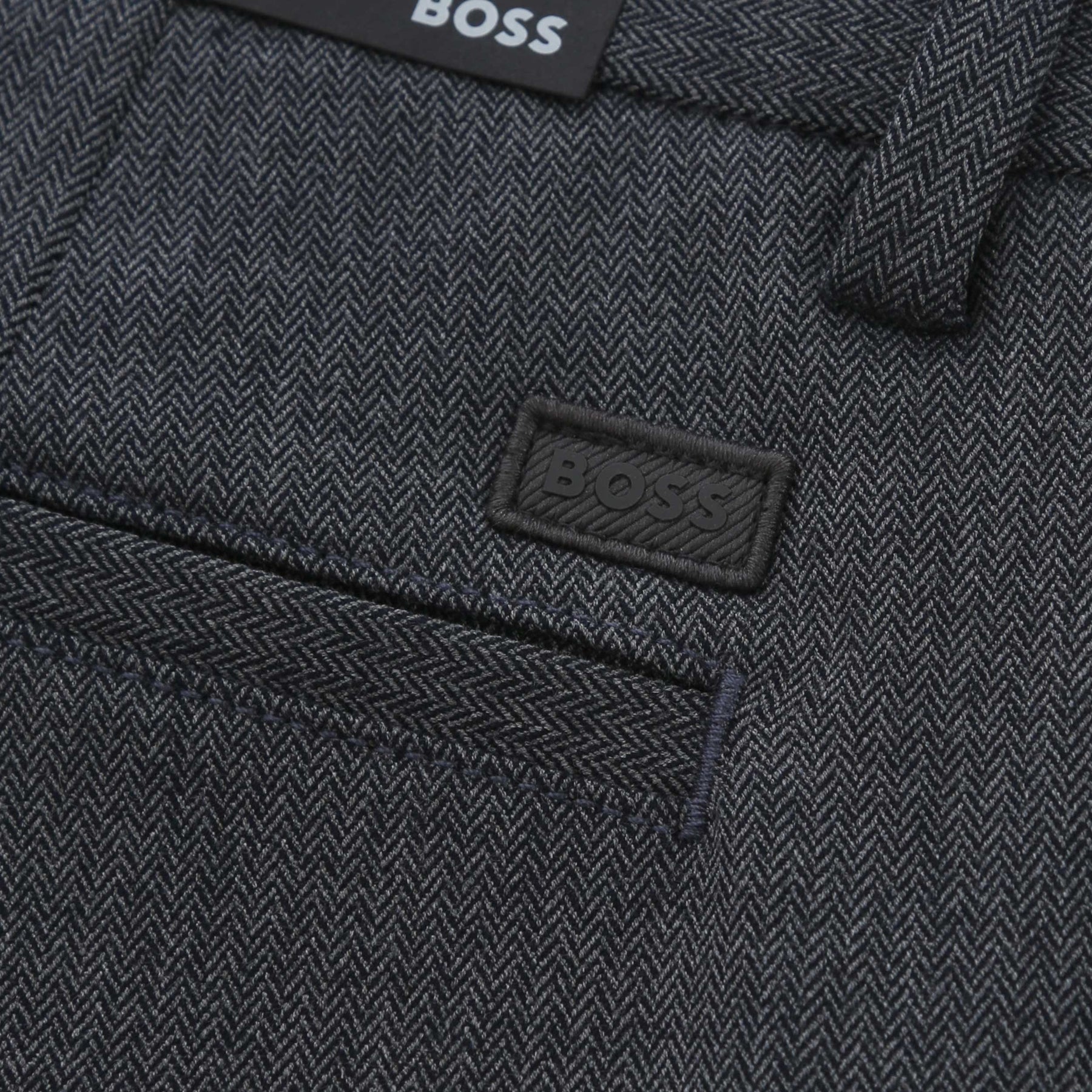BOSS H Kaiton1 Chino in Dark Blue. Tech fabric chino by BOSS in a slim fit. These lightweight tech chinos features a regular-high waist, button with zip fastening. 2 side slash pockets, 2 piped pockets on the back. Boss logo tab to the seat of the chino. Ideal for chino for both formal and casual occasions.