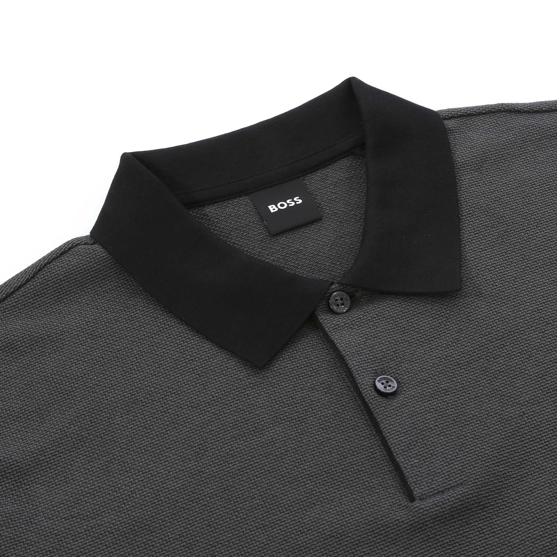 BOSS H Parlay 102 Polo Shirt in Black. Upgrade your everyday wardrobe with this BOSS Menswear polo shirt, crafted from 100% cotton with a distinctive bubble-textured structure for added depth and breathability. Cut to a straight fit, it delivers a clean, modern silhouette that balances comfort with refined casual style. Designed for versatility, this men’s cotton polo shirt works effortlessly with jeans, chinos or tailored trousers. The textured finish elevates a classic polo profile, making it ideal for smart-casual dressing, weekend wear or relaxed office looks.