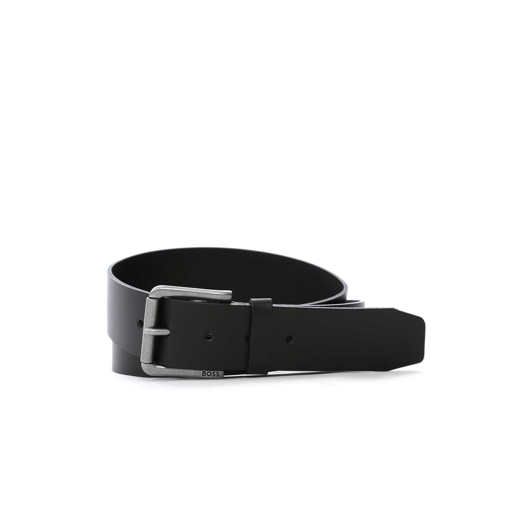 BOSS Joris Sz40 Belt in Black. Smooth leather BOSS belt featuring a square buckle, single belt loop and 5 punch holes. Finished with an embossed BOSS logo on the buckle. Perfect for all occasions.