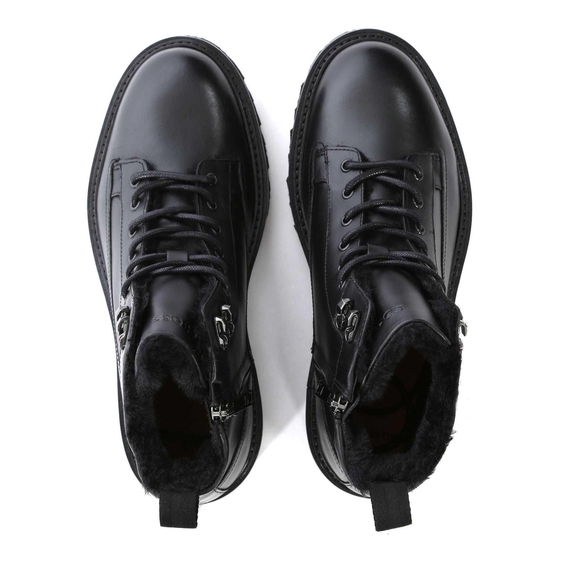 BOSS Julyo Halb bufr Boot in Black. A hiking inspired hybrid boot by BOSS. Featuring grained leather uppers with a rubber sole. Hiking style rubber outer sole. 5 D-ring lace up. Embossed Hugo BOSS logo. Fluffy lining perfect for those winter walks.