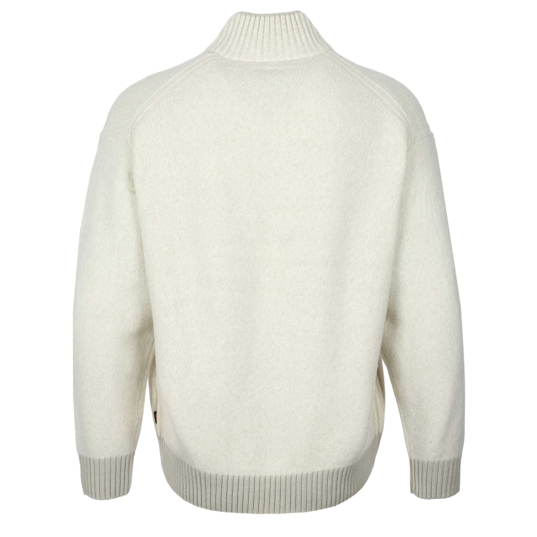 BOSS Kobear Quarter Zip in Light Beige. The BOSS Oversized Kobear Quarter Zip Jumper in Light Beige delivers heavyweight comfort with a modern, relaxed silhouette. Knitted from a luxurious wool blend enriched with yak fibres, it offers exceptional softness, warmth and a rich, textured feel. The plain-knit body is elevated with fully fashioned rib detailing along the seams and shoulders for a subtle, structured finish. A standout layer for transitional seasons and everyday premium wear.