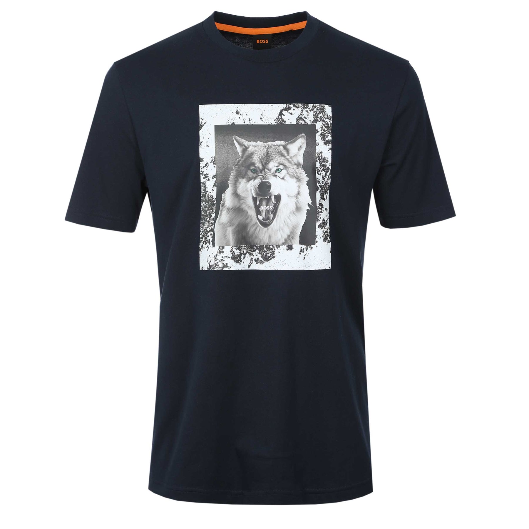 BOSS TE Lupo in Dark Blue. A classic T-Shirt by BOSS. This regular fit T-Shirt is easily worn and comfortable for everyday wear. It is detailed with a small tonal BOSS logo patch on the chest.