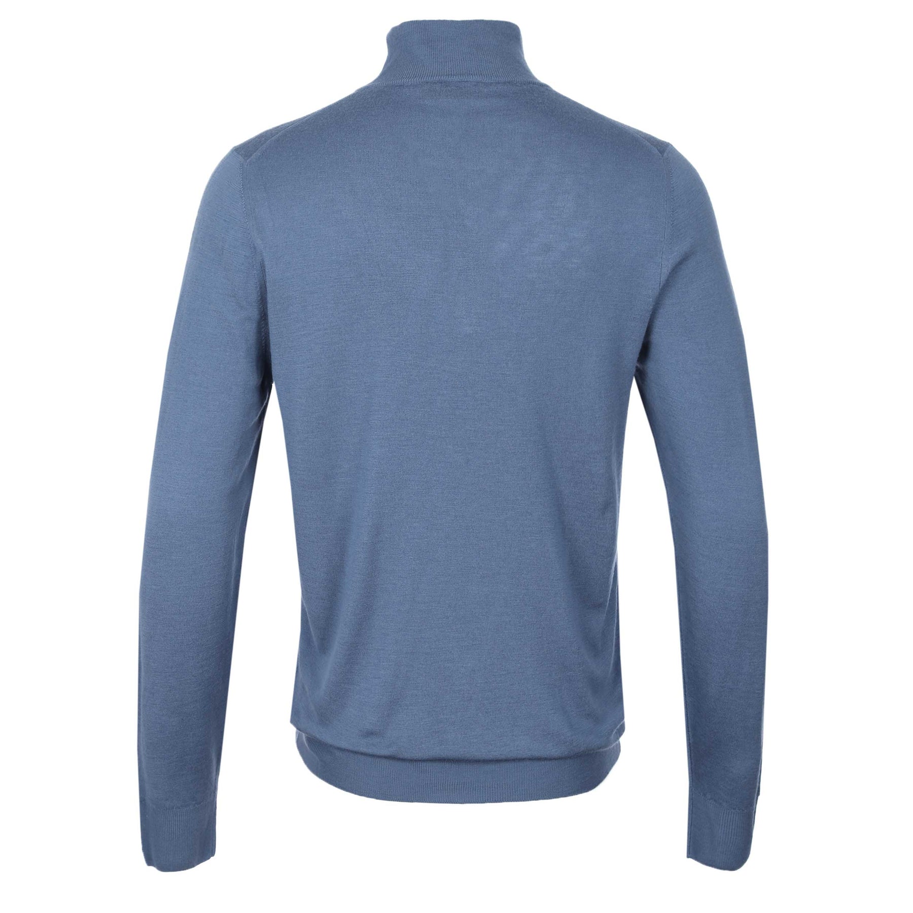 Canali 1/4 Zip Knitwear in Blue. Elevate your seasonal wardrobe with our meticulously crafted long-sleeved mock turtleneck featuring extra-fine pure merino wool. Our carefully designed piece boasts a refined touch, accentuated by a convenient zip and ribbed details. Embodying a well-groomed casual style, it's the ideal addition for the detail-oriented man seeking timeless sophistication. Crafted in Italy with precision and expertise.