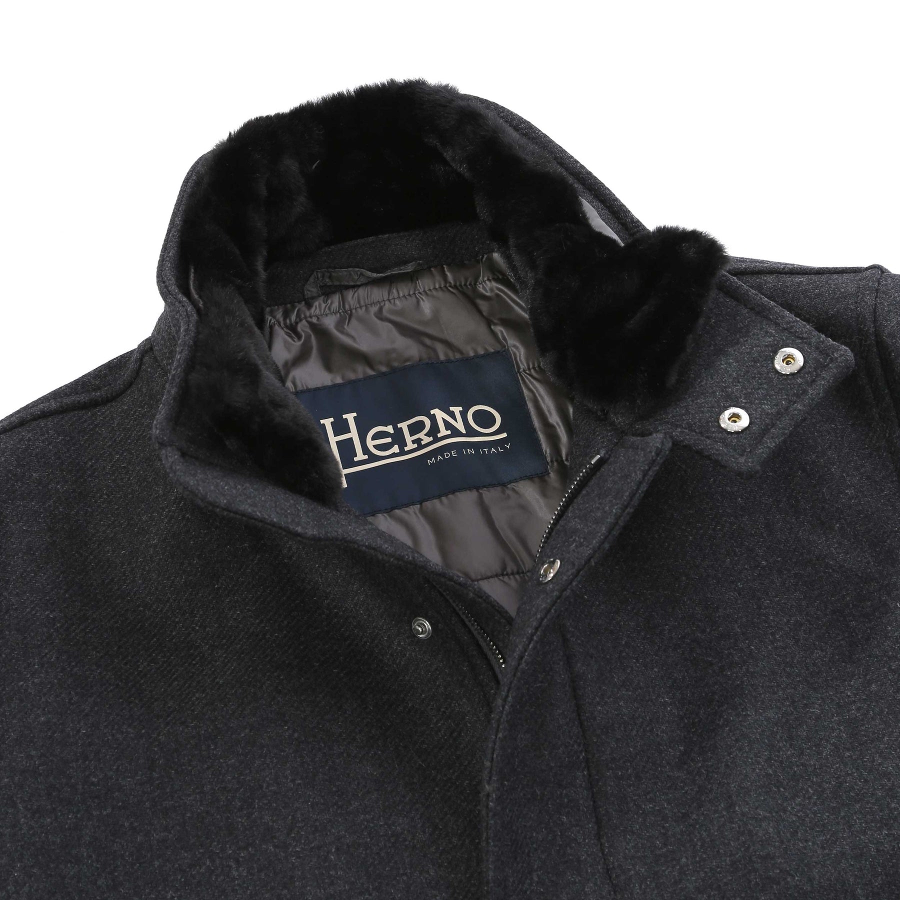 Herno Cappotto Con Collo Ecopelliccia Jacket in Anthracite