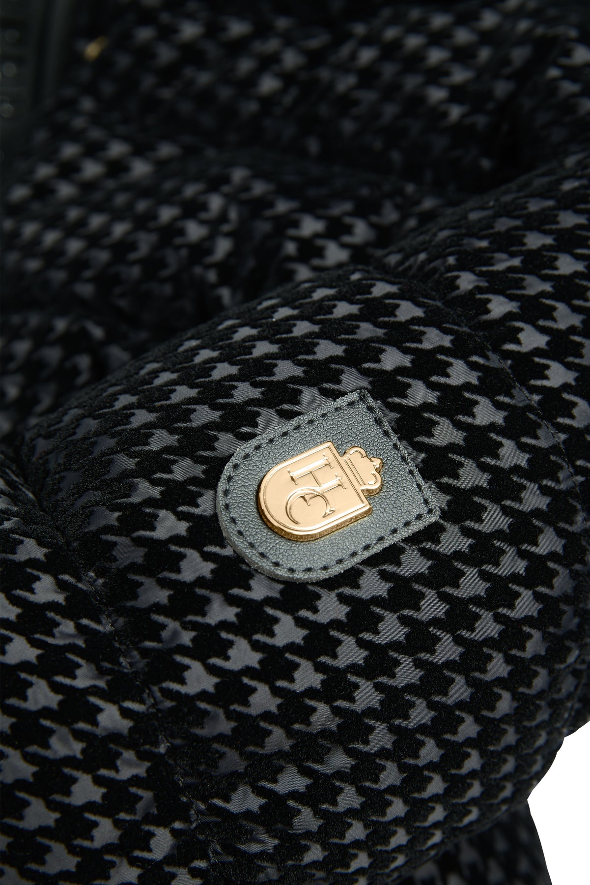 The Arosa Jacket features an oversized hood that adds a touch of drama and extra protection against the elements. Its quilted design, crafted with a soft velour touch houndstooth pattern, not only looks stylish but also ensures comfort in cold weather. The full zip fastening, complemented by a hand-plated gold Holland Cooper signature logo buckle waist belt, allows you to tailor the fit according to your preference, making it as chic as it is functional.