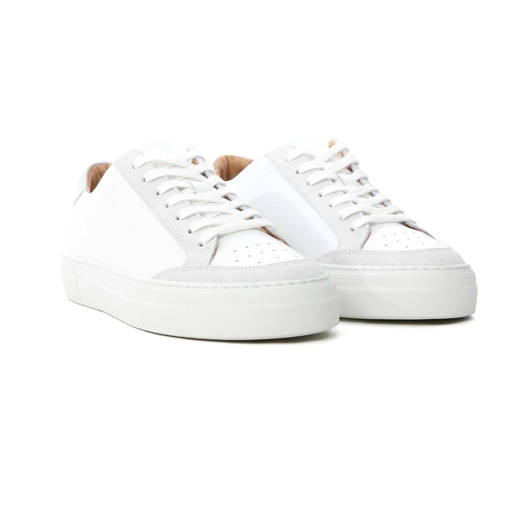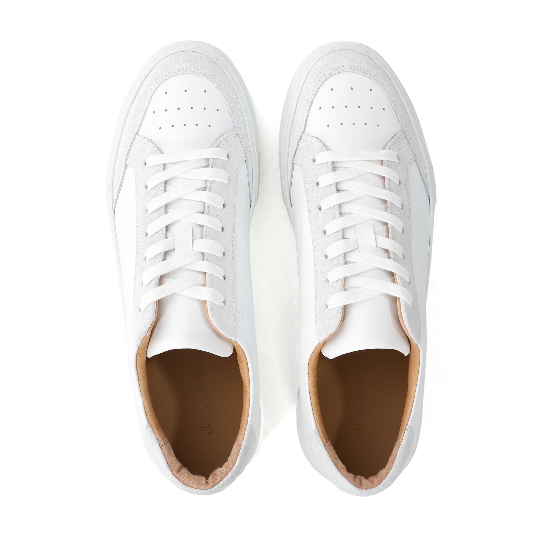 J.Lindeberg Art Signature Trainer in White. The J.Lindeberg Art Signature Leather Sneaker is crafted from smooth calf leather, this low-top design features a perforated toe. A cushioned rubber sole for all-day comfort. Suede panel detailing finished with leather lining, flat cotton laces, and the signature debossed Bridge logo at the heel, it’s the perfect blend of style and versatility. Pairs effortlessly with jeans, chinos, or tailored trousers for a smart, contemporary look.