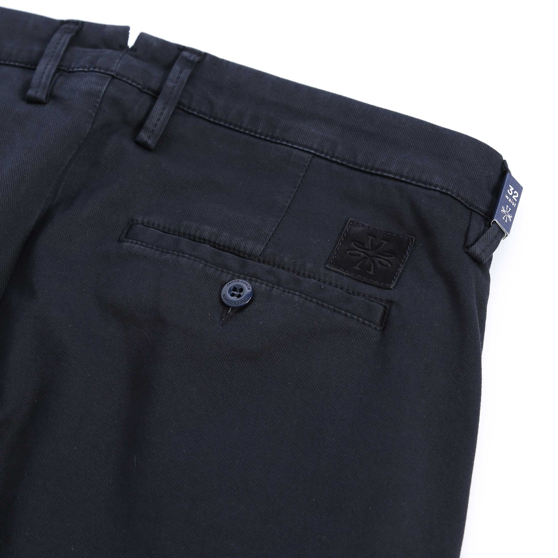 The classic chino style is enhanced with a button and zip fly fastening, complemented by belt loops for added convenience. The subtle Jacob Cohen logo on the rear speaks to the brand's attention to detail and commitment to quality craftsmanship.