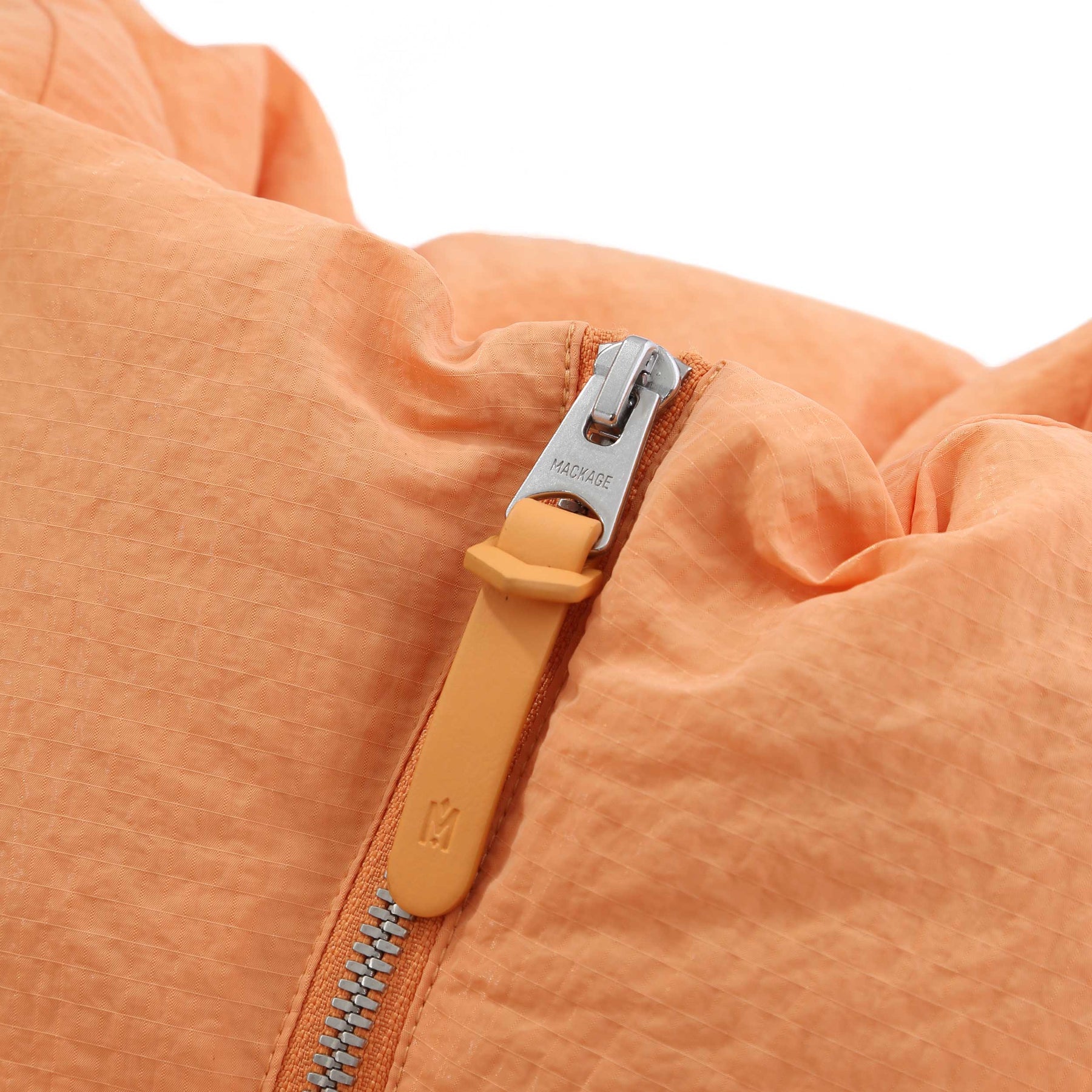 Mackage Naki Ladies Gilet in Smoke Orange. Oversized gilety by Mackage. Lightweight gilet constructed from a tactical ripstop fabric. NAKI features a stand collar and insulated zip waist pockets, delivering protective warmth on the chilliest days. It is water resistant and repellent, while the breathable fabric prevents overheating. Mackage logo badge to the chest.