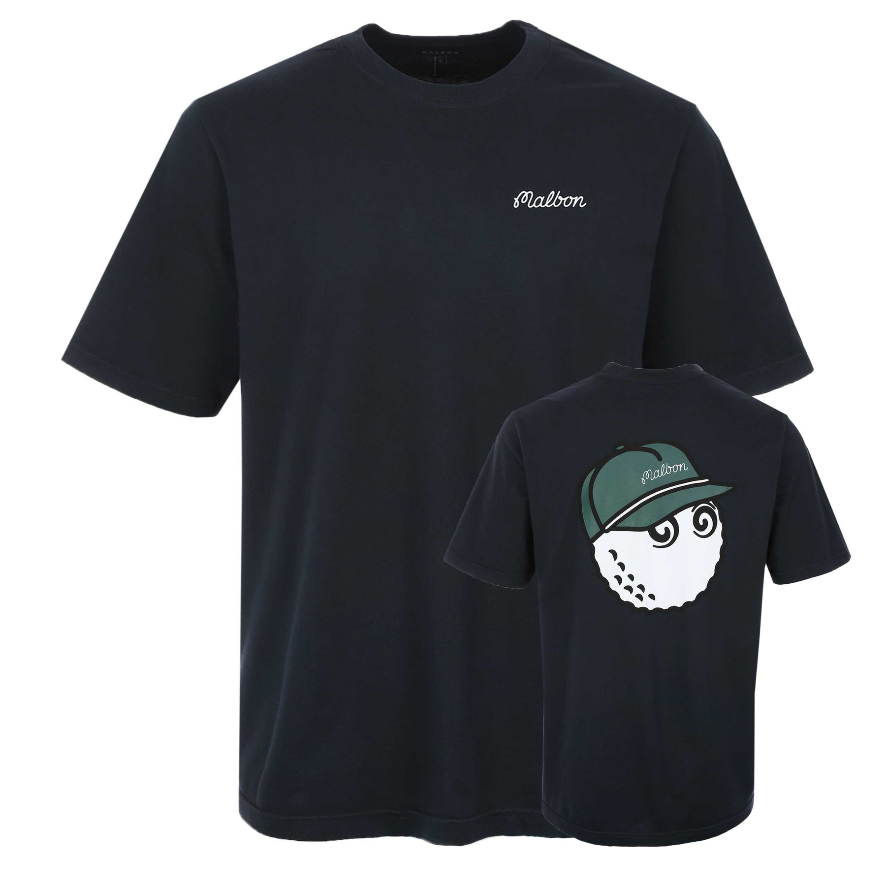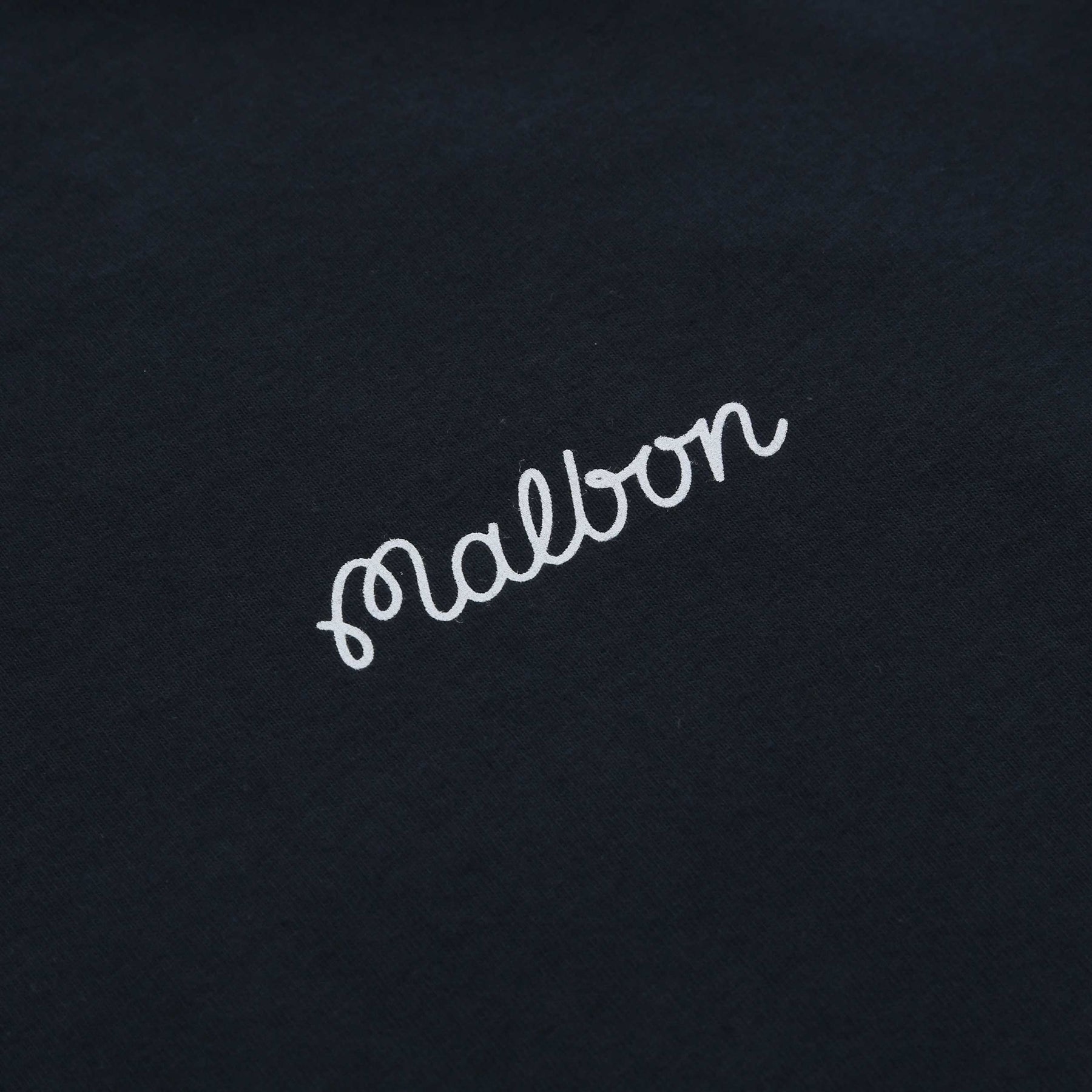 Malbon Bermuda Baldwin T-Shirt in Navy. T-Shirt by Malbon This short-sleeve T-shirt is crafted from premium cotton for a soft, breathable feel and an effortlessly refined look. It arrives in a relaxed fit. Malbon script logo to the chest with a large print to the back of the t-shirt. Perfect for on the golf course or evryday wear.