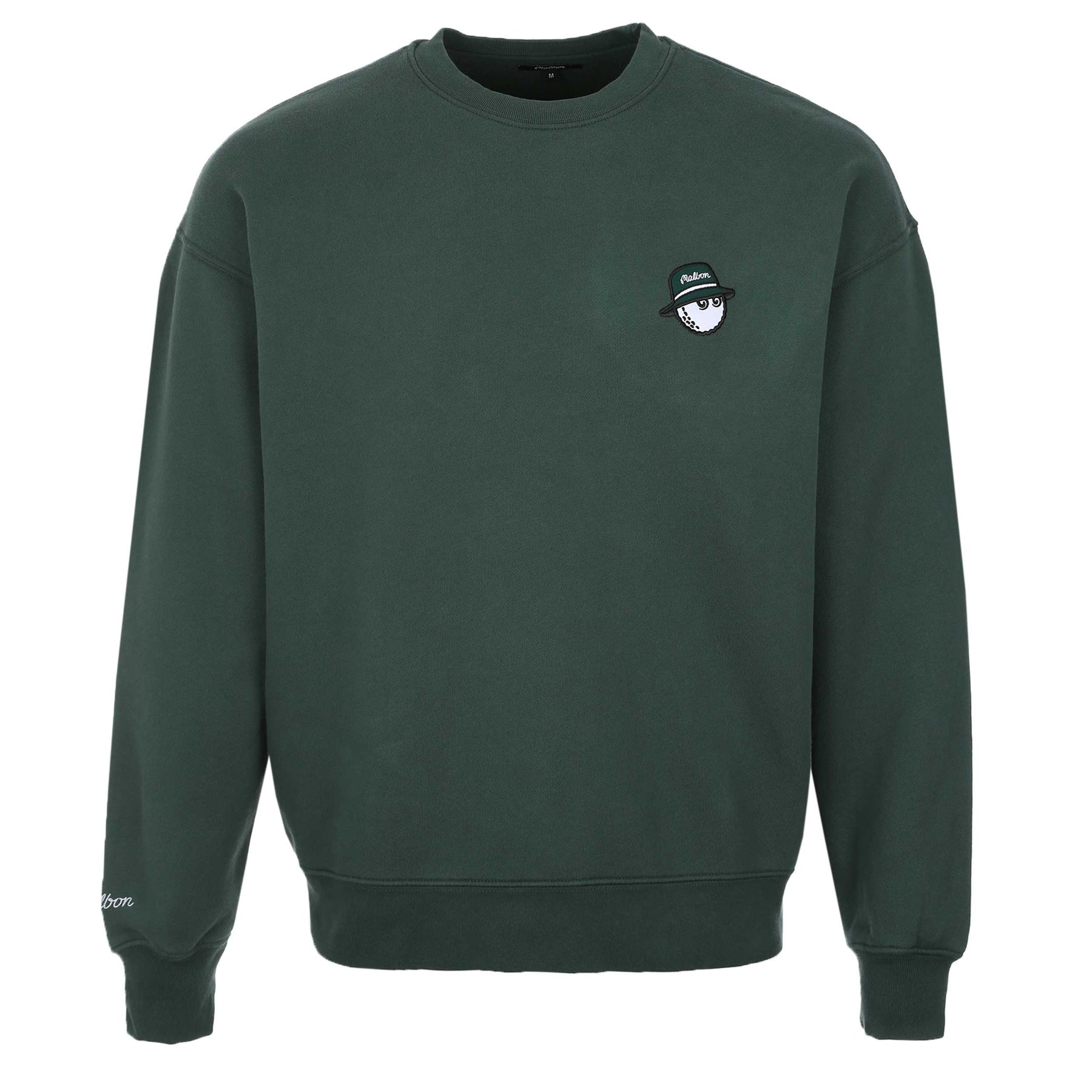 Malbon Range Cooper Sweatshirt in Forest Green. A crew neck sweatshirt by Malbon. This classically styled sweatshirt arrives with long sleeves. Embroidered Malbon logo badge to the chest. Ribbed collar, cuffs and waistband. Finished with a Malbon script logo to the right cuff.