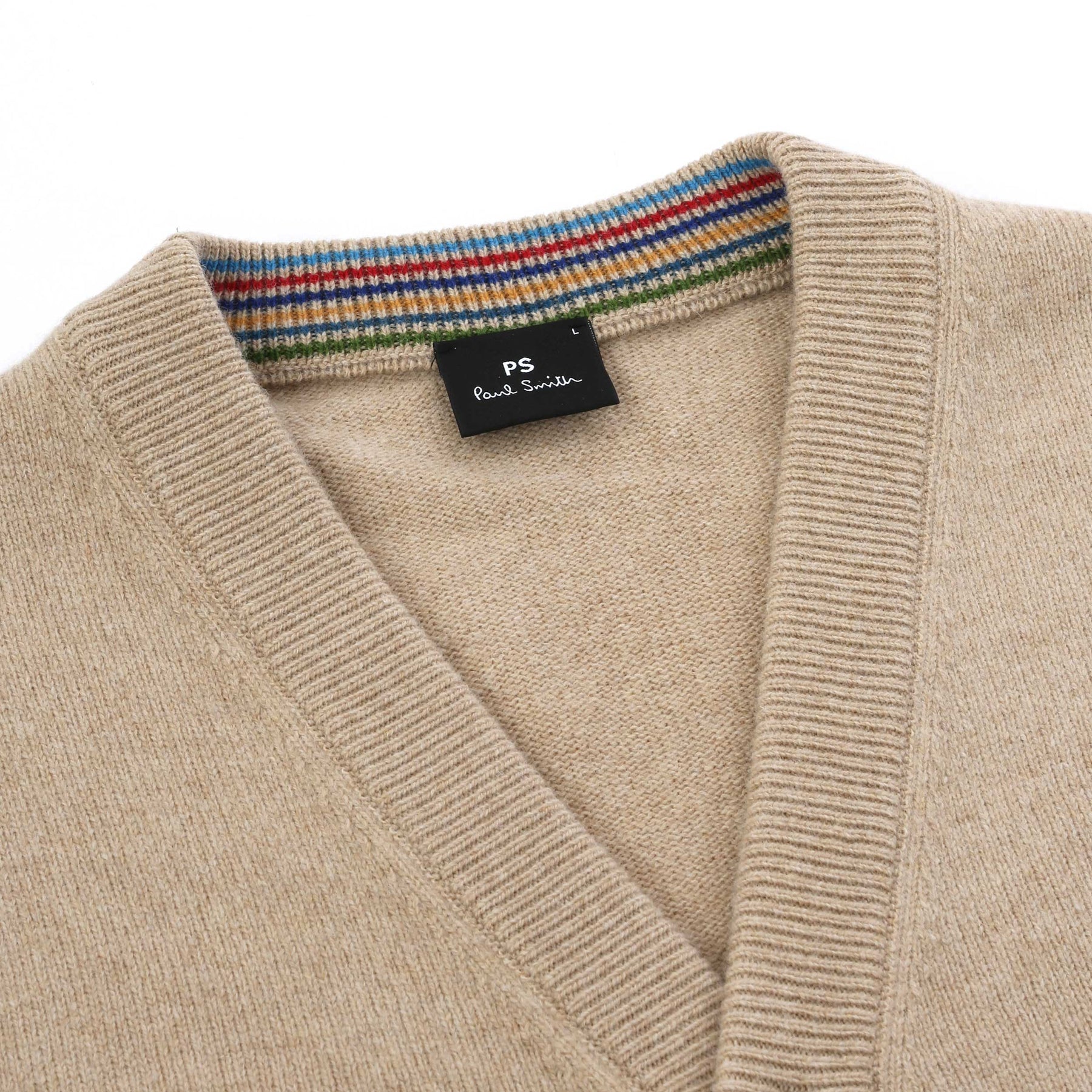 Introducing the Paul Smith Button Through Cardigan, a must-have addition to your wardrobe that expertly combines comfort with timeless style. This luxurious beige cardigan is crafted from 100% Merino wool, ensuring warmth and softness against your skin. Designed by the iconic Paul Smith brand, known for its quality craftsmanship and vibrant designs, this cardigan features a classic button-up silhouette that effortlessly enhances any outfit.