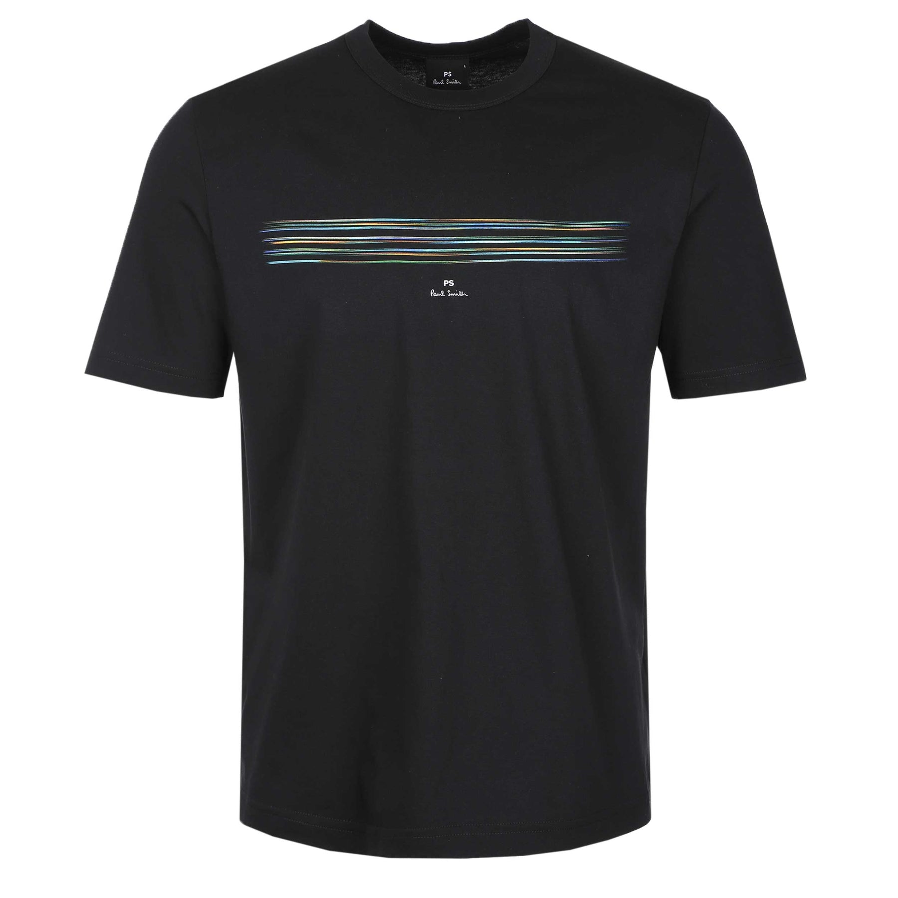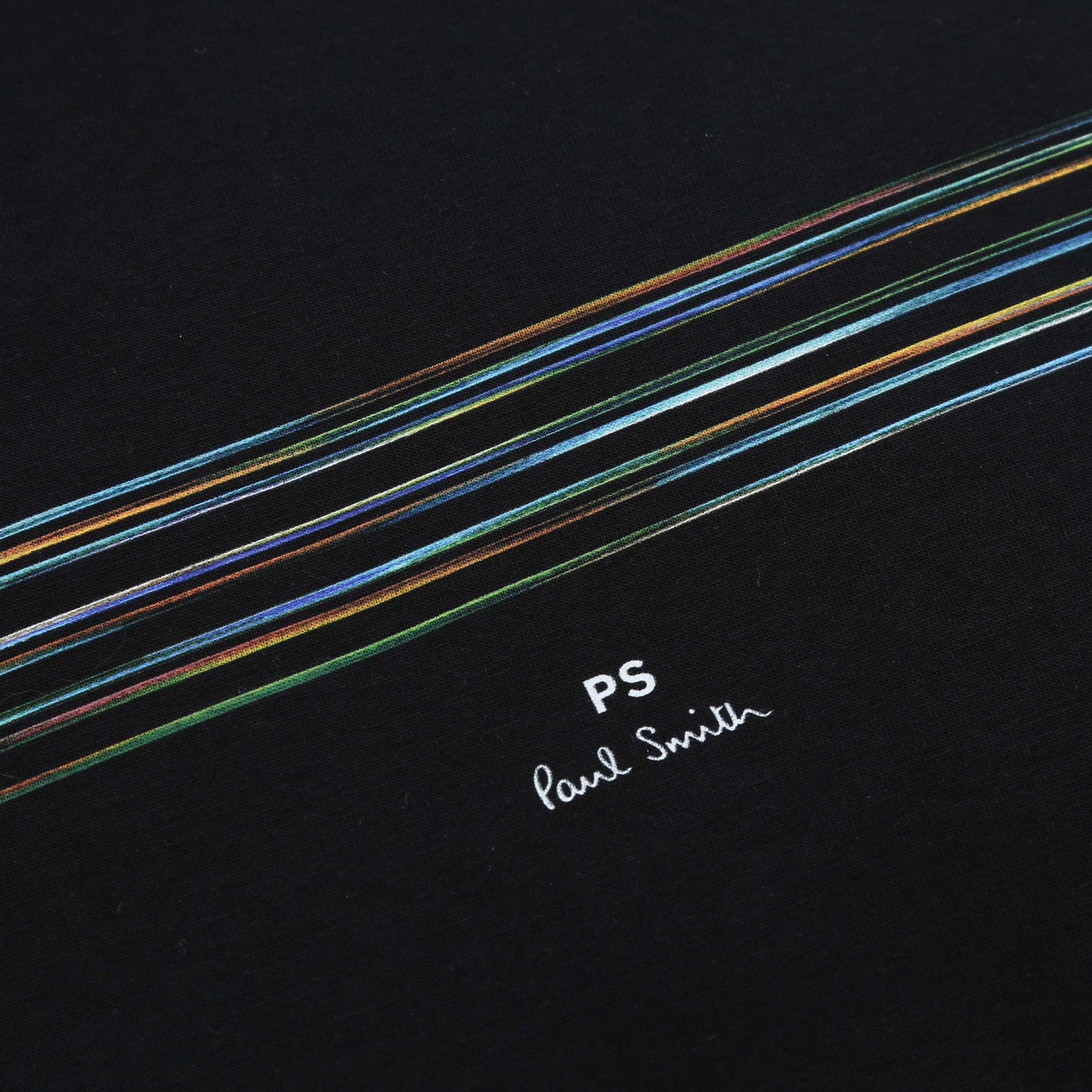Discover the elegance and style of the Paul Smith Casual Fit Stripe T-Shirt in Black. This versatile t-shirt is perfect for any casual outing, bringing a sophisticated touch to your everyday wardrobe. Designed by the renowned fashion designer Paul Smith, it showcases a unique multicoloured stripe design across the chest, making it a standout piece.