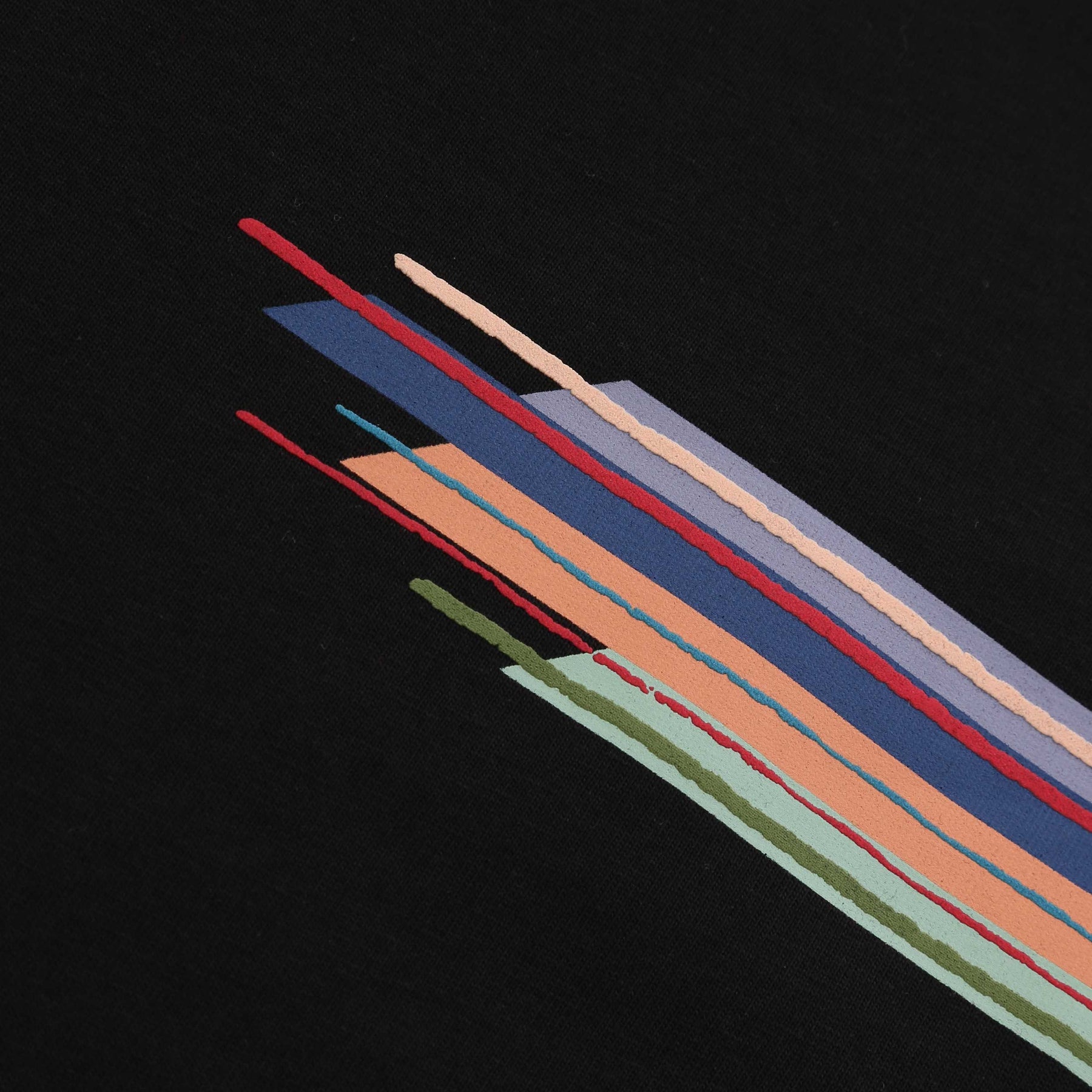 Discover the elegance and style of the Paul Smith Casual Fit Stripe T-Shirt in Black. This versatile t-shirt is perfect for any casual outing, bringing a sophisticated touch to your everyday wardrobe. Designed by the renowned fashion designer Paul Smith, it showcases a unique printed multicoloured stripe design across the chest, making it a standout piece.