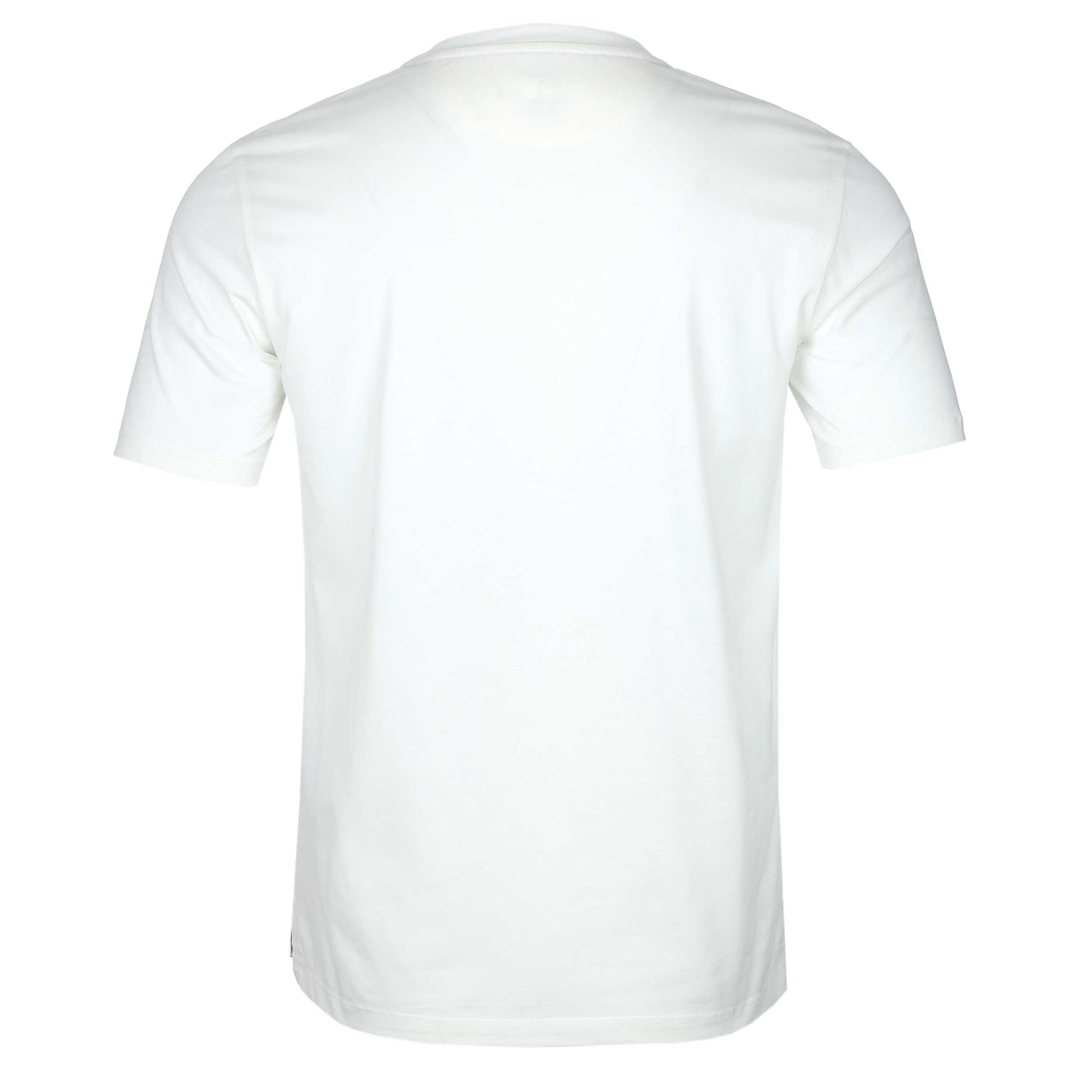 Paul Smith Stripe Emb T Shirt in White. A classic T shirt by Paul Smith with a v neck and short sleeves. A contrasting signature multi-coloured stripe logo badge to the chest of the t-shirt. Paul Smith t-shirt that is perfect to wear on its own or layer underneath a jacket/knitwear.