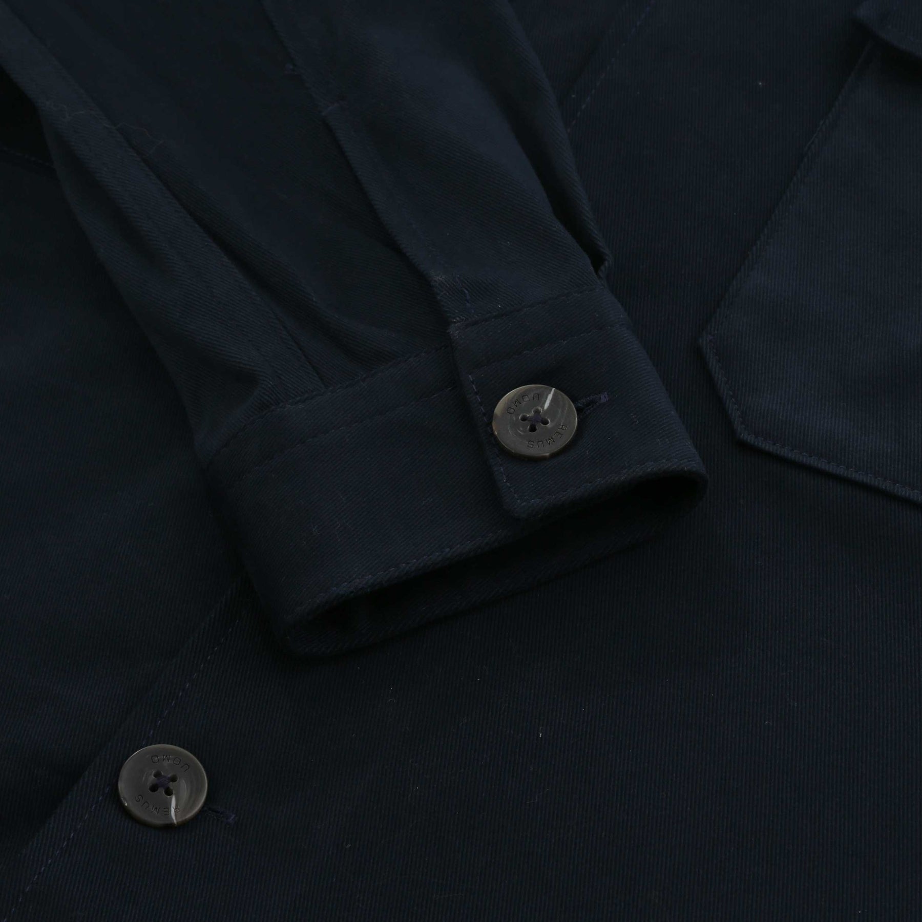 With its tonal embroidered logo at the nape, this overshirt is a statement piece that reflects quality craftsmanship. Pair it with a simple t-shirt for a laid-back look or layer it under a heavier coat for those colder days. The navy twill fabric ensures that you stay on trend while being comfortable and yourself.