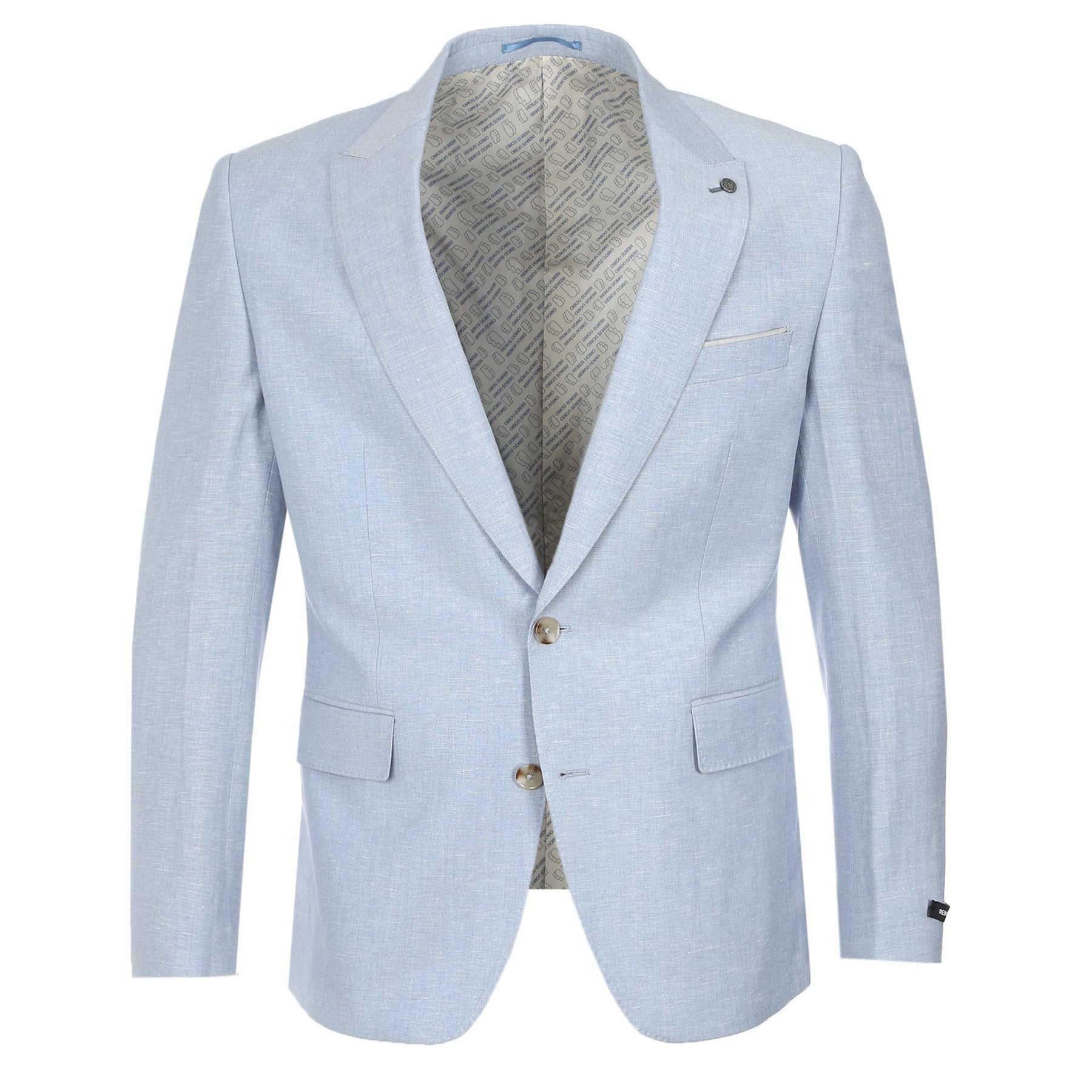 Remus Uomo Peppe Jacket in Sky Blue. Jacket by Remus Uomo. This tapered fit linen-blend jacket is tailored for a sharp, modern silhouette with warm-weather versatility. The linen blend construction offers natural breathability and lightweight structure, making it ideal for spring and summer occasions. Cut in a tapered fit, it creates a clean, streamlined profile without feeling restrictive. A peak lapel adds confident character, while the classic two-button fastening keeps the look timeless and versatile. Finished with straight flap side pockets for a traditional tailored detail. A contemporary linen-blend blazer designed for weddings, race days, summer events and elevated everyday tailoring.