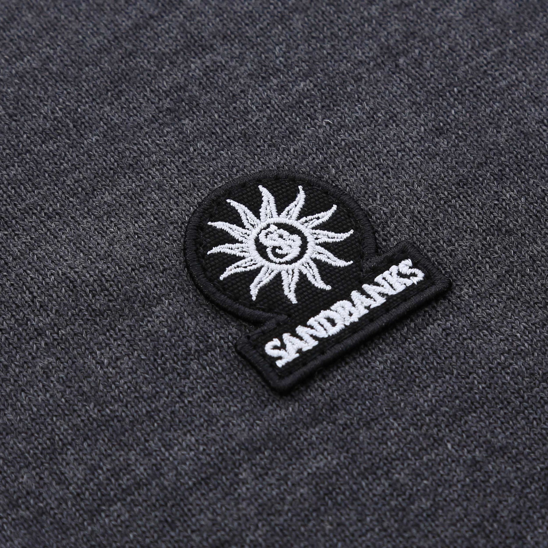 Sandbanks Merino Wool 1/4 Zip Knitwear in Anthracite. Knitwear by Sandbanks. Constructed from a fine gauge wool. Ribbed funnel neck with a 1/4 zip fastening placket. Ribbed cuffs and waistband. Embroidered Sandbanks logo badge to the left sleeve.