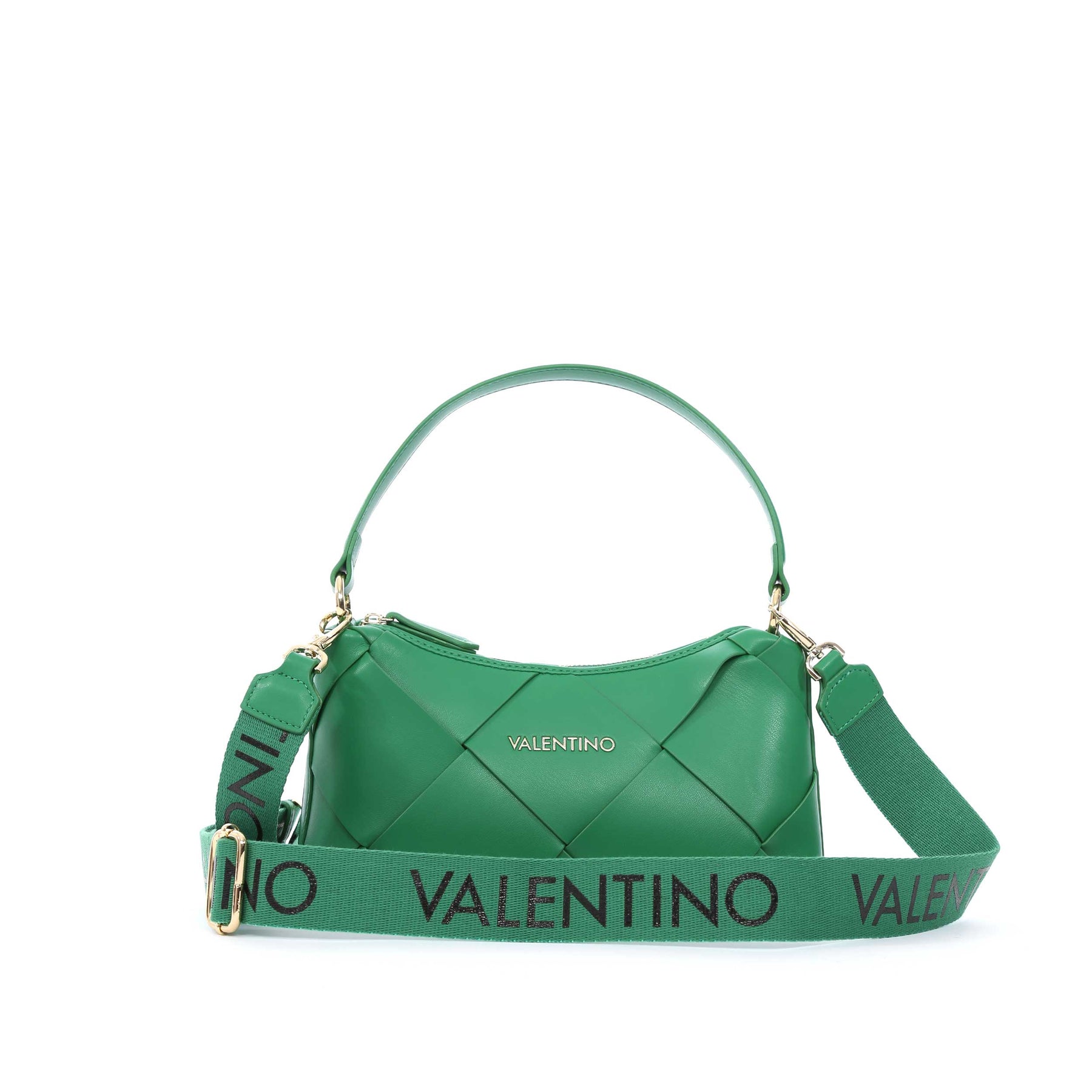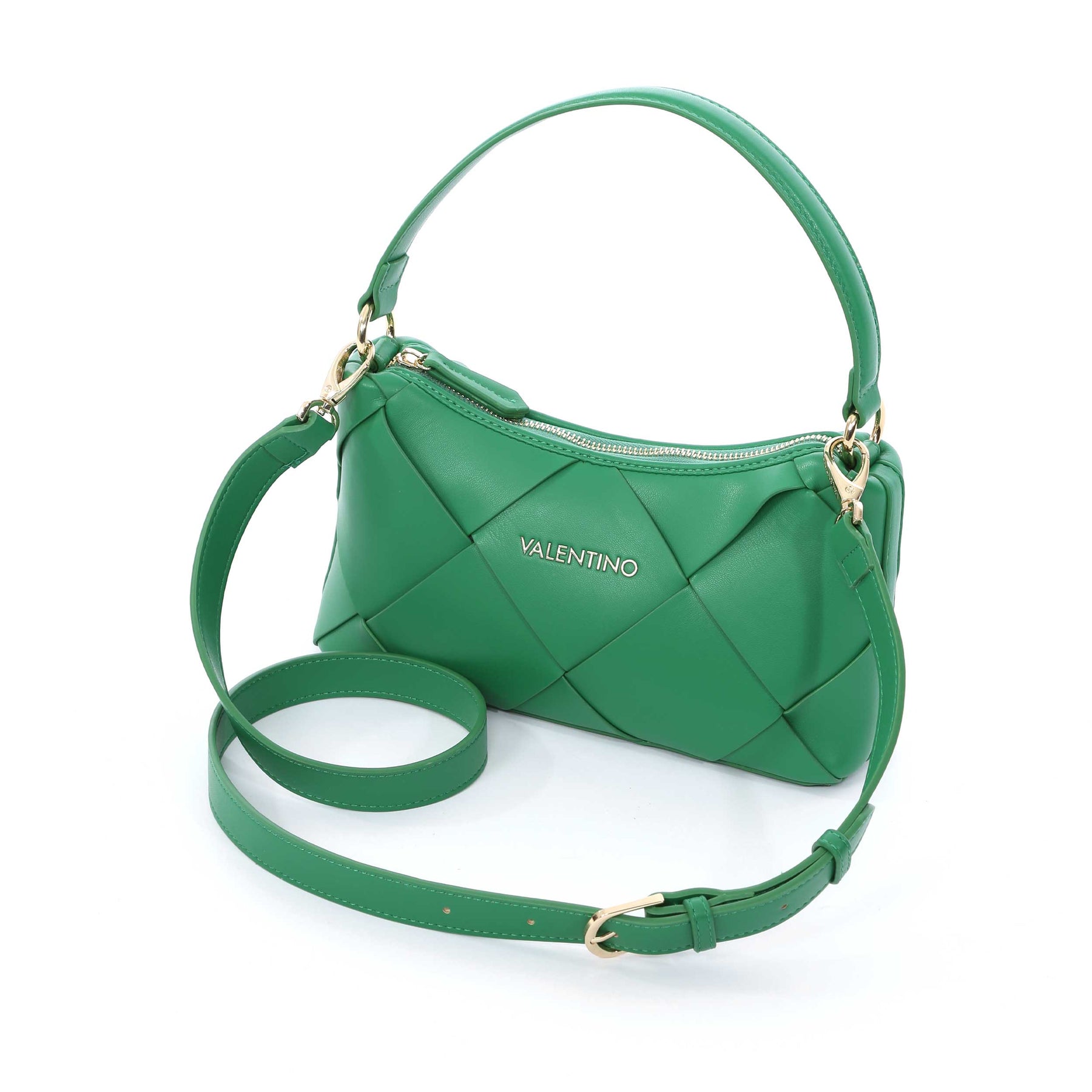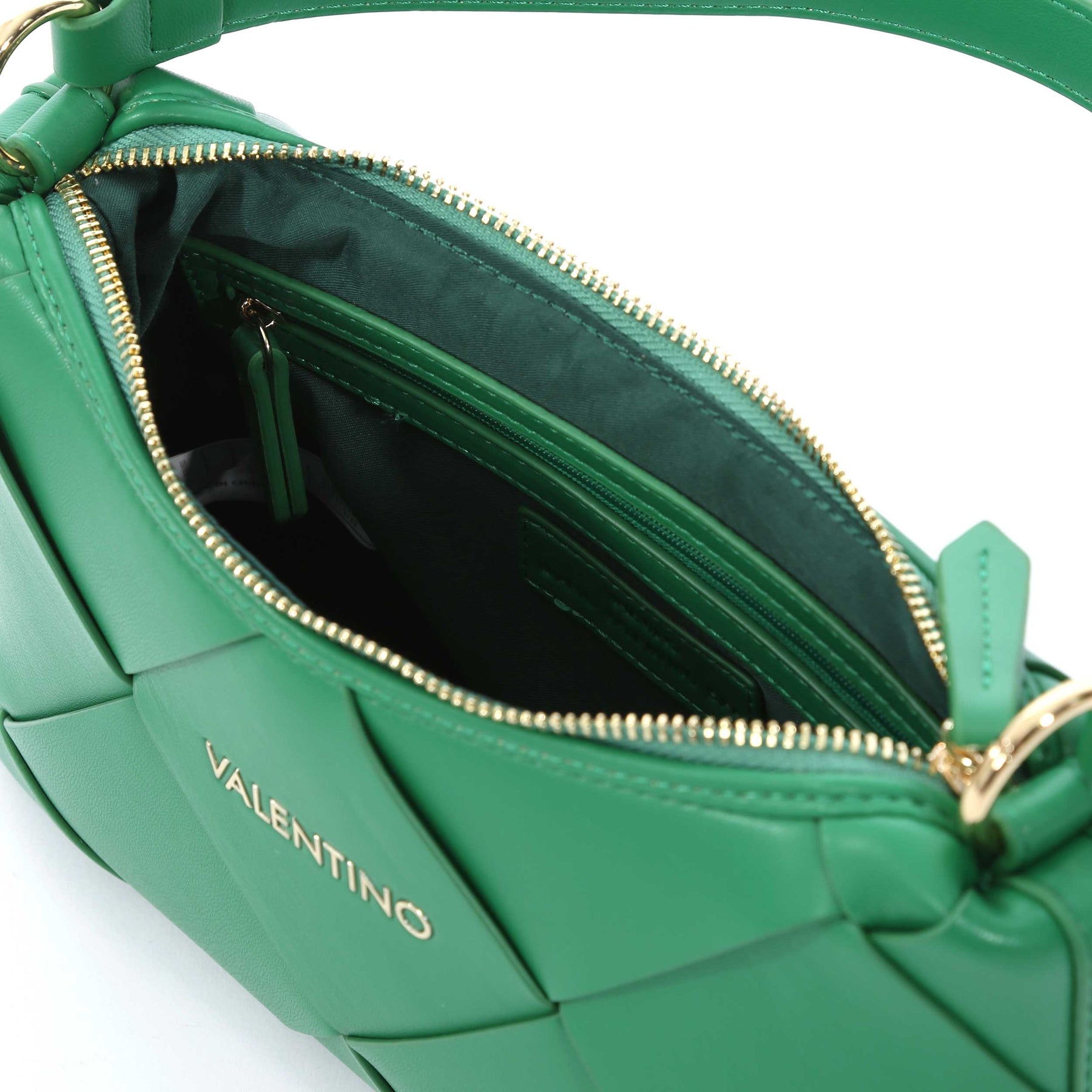 Valentino Bags Ibiza Ladies Shoulder Bag in Green. Handbag by Valentino Bags. This ladies handbag arrives in a large basket weave design. It arrives with a carry handle and two detachable shoulder straps in PU Leather and fabric. Valentino branding to the front of the bag. Zip fastening to the top of the bag. Zip compartment. Dust bag included.