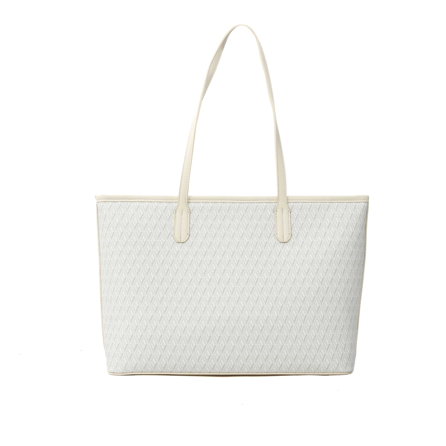 Introducing the Valentino Bags Queen RE Ladies Tote Bag in Ecru. The Valentino Bags Queen RE Ladies Tote Bag in Ecru is a sleek, everyday accessory with a polished, modern edge. Crafted from smooth faux leather with a structured silhouette, it features bold signature Valentino branding that elevates the look instantly. The spacious main compartment offers plenty of room for daily essentials, while the sturdy handles make it perfect for work, shopping or day-to-day use. Stylish, versatile and effortlessly elegant — it’s the go-to tote when you want practicality without sacrificing impact. Additional small purse included with the bag.